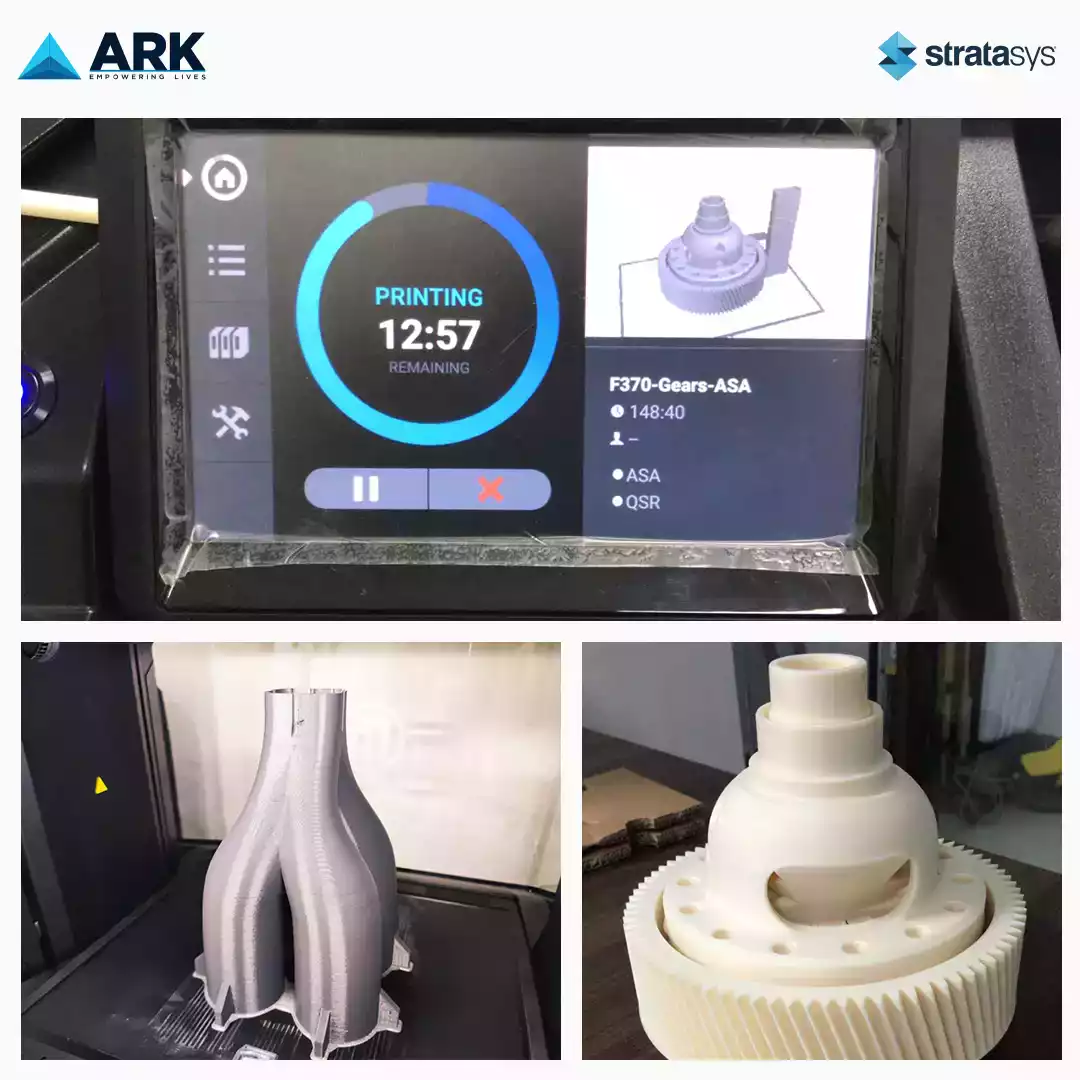 Stratasys recognize the importance to make this disruptive technology more accessible to the people, so being an authorized partner for Stratasys, ARK Infosolutions is bringing this product and services closer to the customers through this experience centre. Here, we have a range of 3D printer like Stratasys J55 and F370, also it houses MakerBot Replicator+ and MakerBot Method 3D Printers as well. When you will visit, you will meet a team of experts who will help you understand the working of the machines and yes nevertheless, you can yourself experience the working of the same in front of you. There are also few 3D models which will give you the look and feel of the final product.
